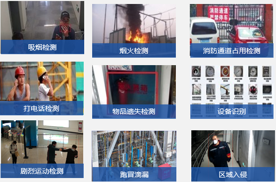 5. 烟火智能识别:通过超脑与人工智能算法自动识别明火、烟雾等环境异常情况,及时发出报警,并通过对讲机实现对烟火险情的即发现即报警即制止。