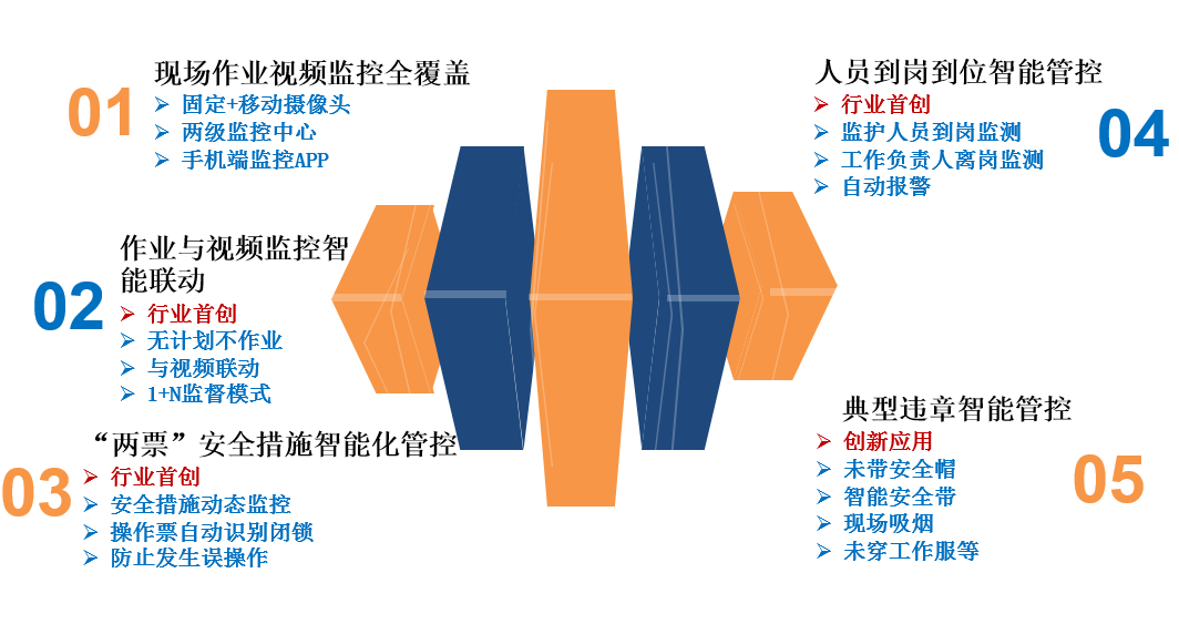 人员、设备、作业、环境等资源状态可视,作业流程透明,所有作业过程都进行视频直播,事后回放。基于数据,透明化的安全评价。通过大数据分析,建立违章管理可改进基线,推动持续改进,直至零违章目标的实现。