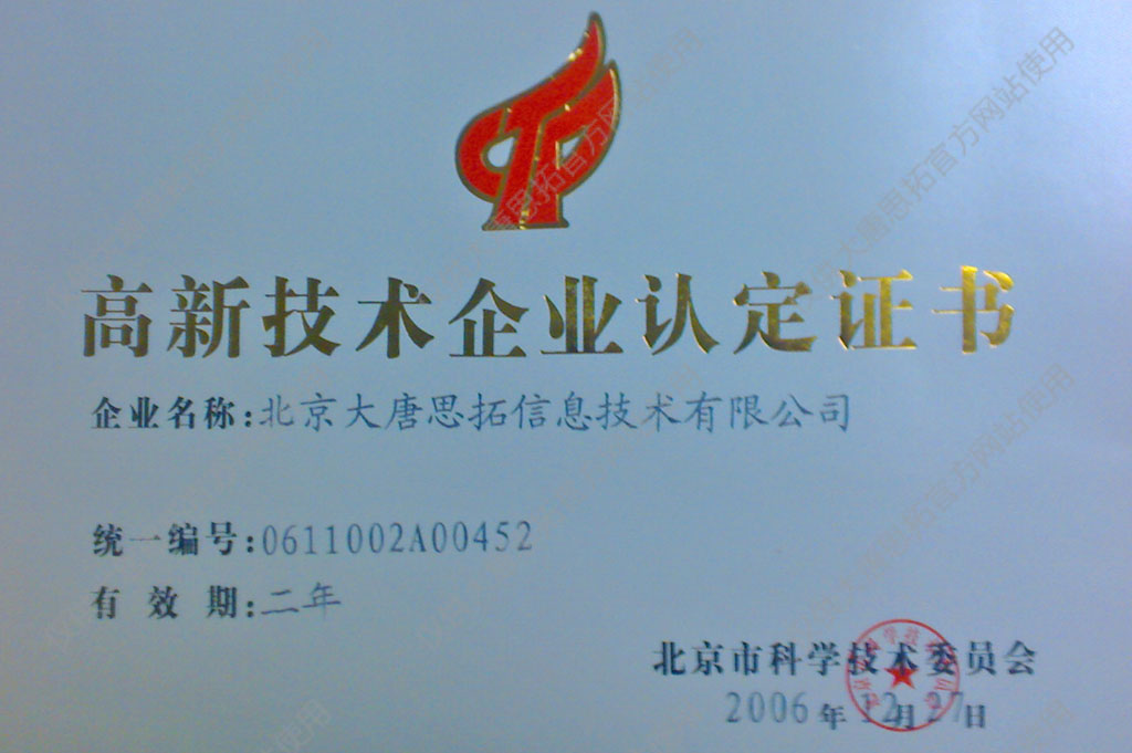 北京大唐思拓信息技术有限公司成立于2006年4月,注册资本950万元,是一家专业提供企业管理软件开发和服务的高科技企业。公司总部位于北京中关村德胜科技园,是北京市科委认定的“双软认定”企业和“高新技术企业”。